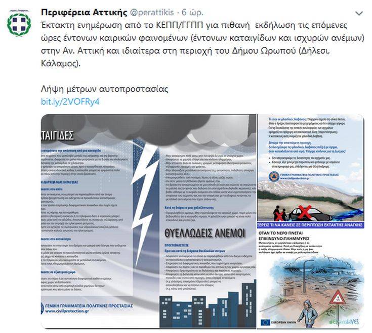 Όλα ξεκίνησαν όταν η Περιφέρεια της Αττικής δημοσίευσε έκτακτη ενημέρωση για πιθανά ακραία καιρικά φαινόμενα στην Ανατολική Αττική και ειδικότερα στον δήμο του Ωρωπού.