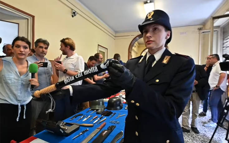 Μάλιστα, στα χέρια των αστυνομικών έφτασαν και κάποια ευρήματα που δημιουργούν αίσθηση, με αρκετά αυτόματα όπλα, μαχαίρια, κράνη, ρόπαλα, αλλά και έναν πύραυλο εδάφους-αέρος, που είναι κατασκευασμένος στη Γαλλία και χρησιμοποιείται από τις Ένοπλες Δυνάμεις του Κατάρ.
