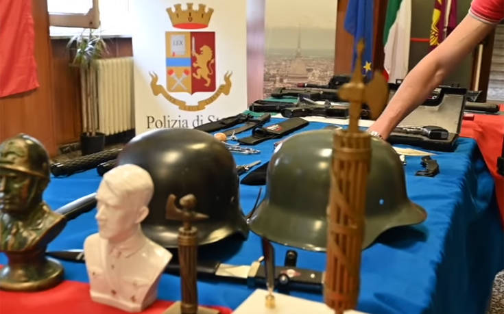 Εκτός από τον πύραυλο, τα όπλα και τα πολλά πολεμοφόδια, στα ευρήματα των Αρχών κάνουν την εμφάνισή τους και αρκετά ναζιστικά και φασιστικά σύμβολα, με τη μορφή του Μουσολίνι να κυριαρχεί.